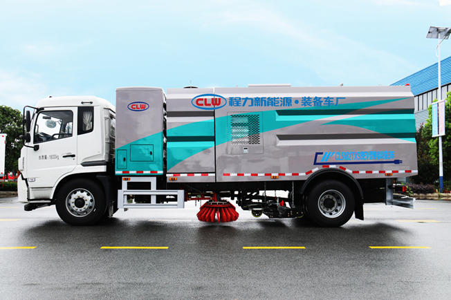 7、程力牌纯电动洗扫车具有路面清洗、路面清扫、路缘清洗、路缘和路缘石立面洗刷、低压冲洗、喷雾除尘等多功能。有“全洗扫”、 “左洗扫”、 “右洗扫”、 “全扫”、 “左扫”、 “右扫”等多种作业模式可选择。选择“全洗扫”模式清洗广场和路面,清洗效率高效果好,洗净率达90%以上。选择“左洗扫”或“右洗扫”模式清洗路面和路缘、洗刷路缘石立面。需要进行路面清扫或路面保洁作业时,可选择扫路模式。需要喷雾除尘时,可开启喷雾装置,进行喷雾除尘作业。